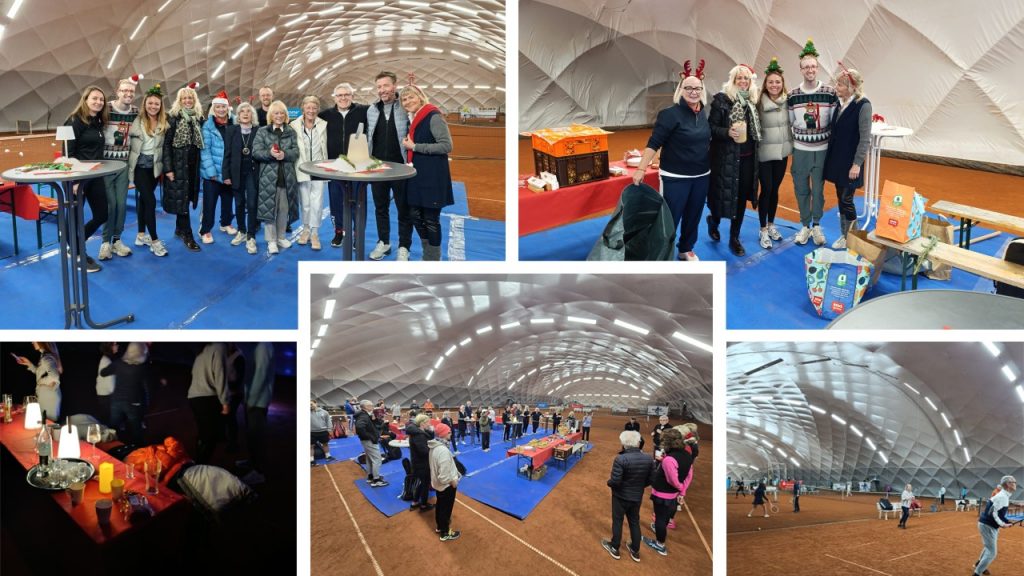 Am Nikolaus-Abend herrschte in unserer Halle echte Weihnachts-Party-Stimmung – mit einem Nikolaus-Turnier der etwas anderen Art. Fast 40 Teilnehmer (und einige Gäste hatten sich auch noch dazugesellt) waren dabei – ein beachtlich großes Feld, das zunächst für eine etwas ungewohnte, aber äußerst unterhaltsame Spielsituation sorgte: mit wechselnden Spielpartnern wurden alle Doppel nämlich im Kleinfeld gespielt, und das mit druckreduzierten Bällen. Währenddessen lief weihnachtliche Musik durch die Halle, und in den Spielpausen gab’s für die Durstigen einen Glühwein. Später konnten sich alle mit Bratwurst und Brötchen stärken. Die Stimmung war durchweg super, und alle Mitglieder hatten sichtlich Spaß. Zum Abschluss wurde sogar noch getanzt – ein klarer Beweis dafür, dass unsere Traglufthalle durchaus Potenzial als Party-Location hat. Wir sind sicher, dass es eine Wiederholung geben wird und freuen uns darauf, das Clubleben weiter auszubauen.